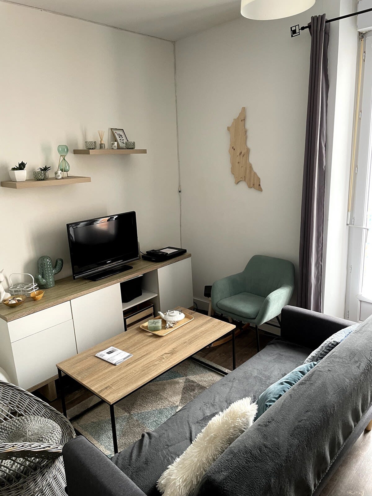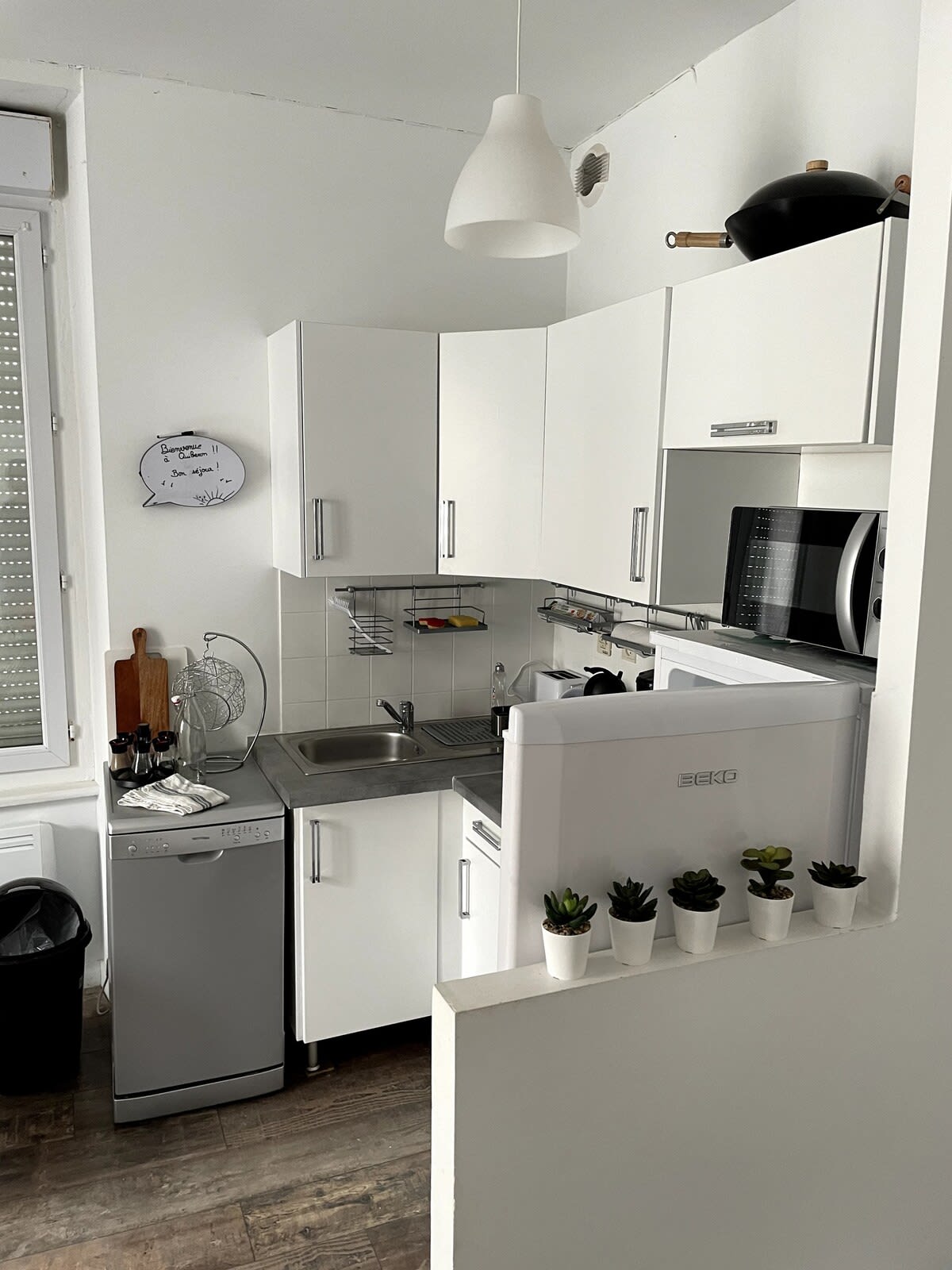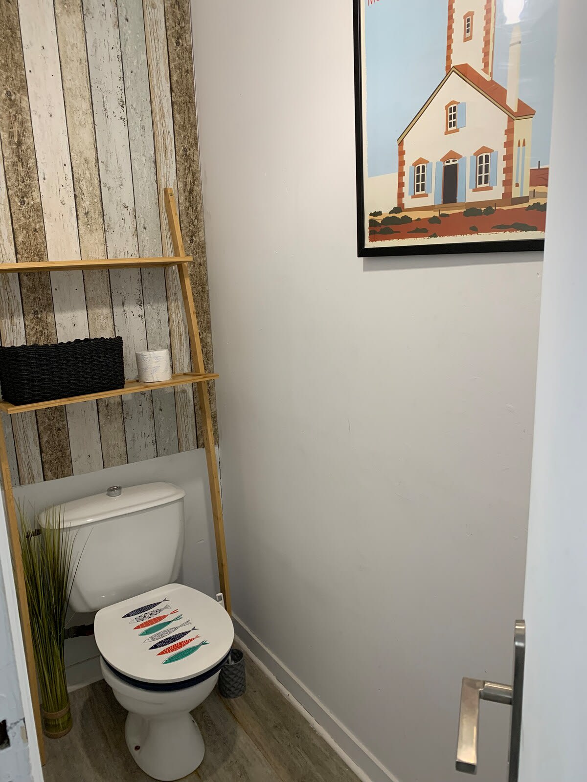 Quiberon: Immeuble de 3 étages. Au centre de Quiberon, à 500 m de la mer, à 500 m de la plage. Place de parking. Magasins, magasin d'alimentation 100 m, supermarché 500 m, restaurant, bar 500 m, boulangerie 200 m, location de bicyclettes 200 m, plage de sable "Grande plage de Quiberon" 500 m. Attractions à proximité: Gare maritime les iles Houat, Hoedic. 800 m, Les alignements de Carnac 26 km, Auray et le port de St Goustan 33 km, Vannes 48 km, Lorient 50 km.