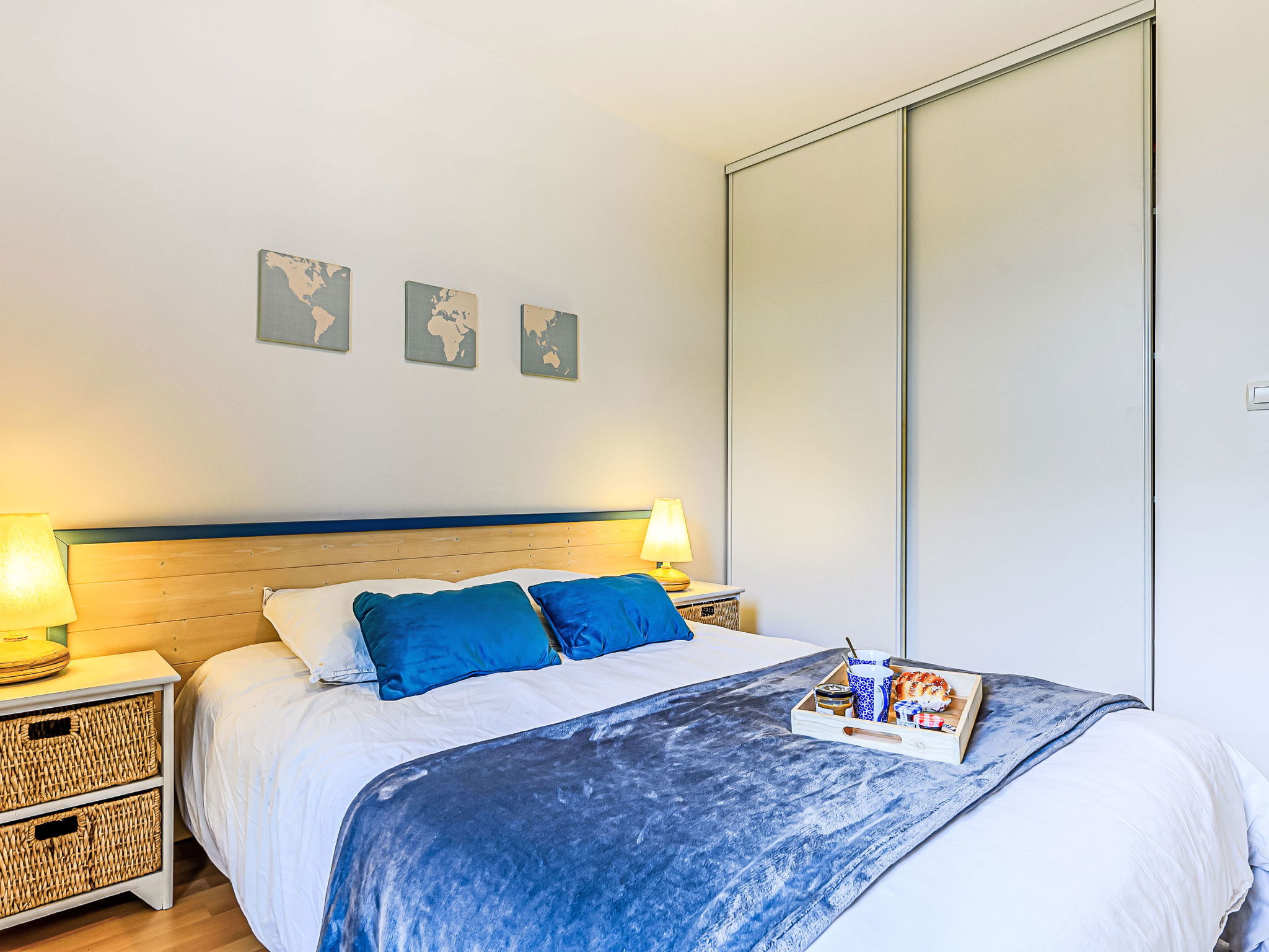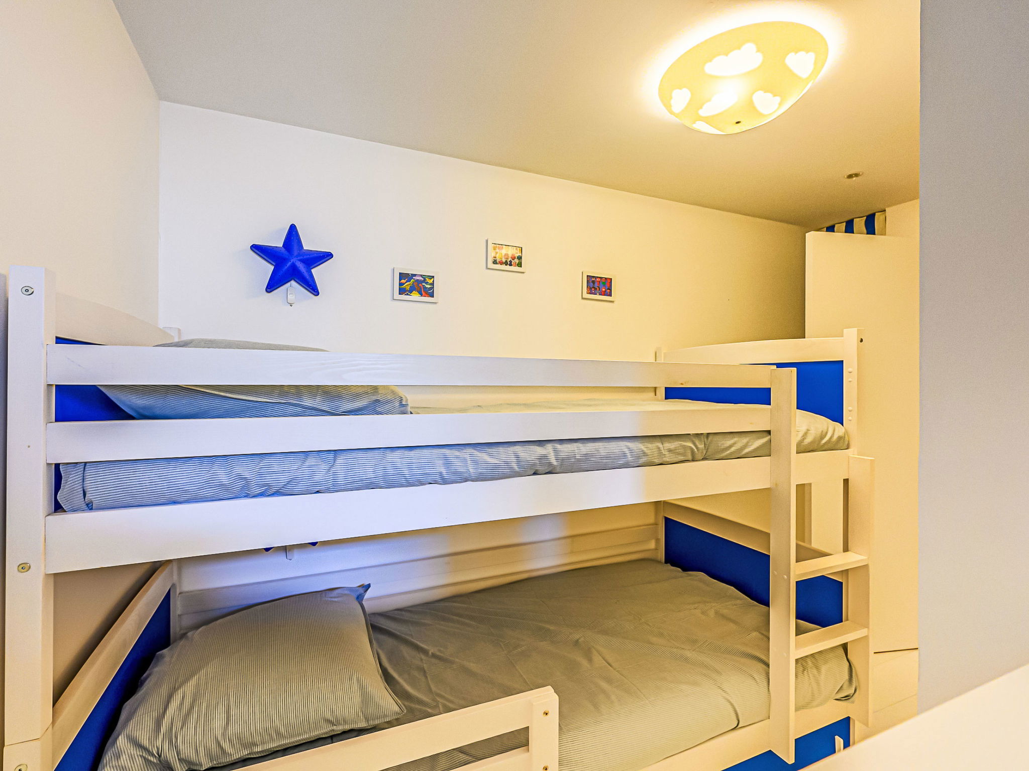 3-room apartment 50 m2, south-east facing position. Comfortable and modern furnishings: living room with dining table and TV (flat screen). Exit to the patio, south-east facing position. 1 room with 1 french bed (160 cm, length 200 cm). 1 small room with 1 x 2 bunk beds (80 cm, length 190 cm). Kitchen (oven, dishwasher, 3 induction hot plates, toaster, kettle, microwave, electric coffee machine). Bathroom, sep. WC. Electric heating. Wooden floors. Terrace 20 m2, patio 50 m2, south-east facing position. Terrace furniture. Facilities: washing machine, children's high chair, baby cot (extra). Internet (WiFi, free). Parking space n A11. Please note: maximum 1 pet/ dog allowed. Smoke alarm. Offer by a private individual according to Art. 155, IV of CGI. 56186 000602 53