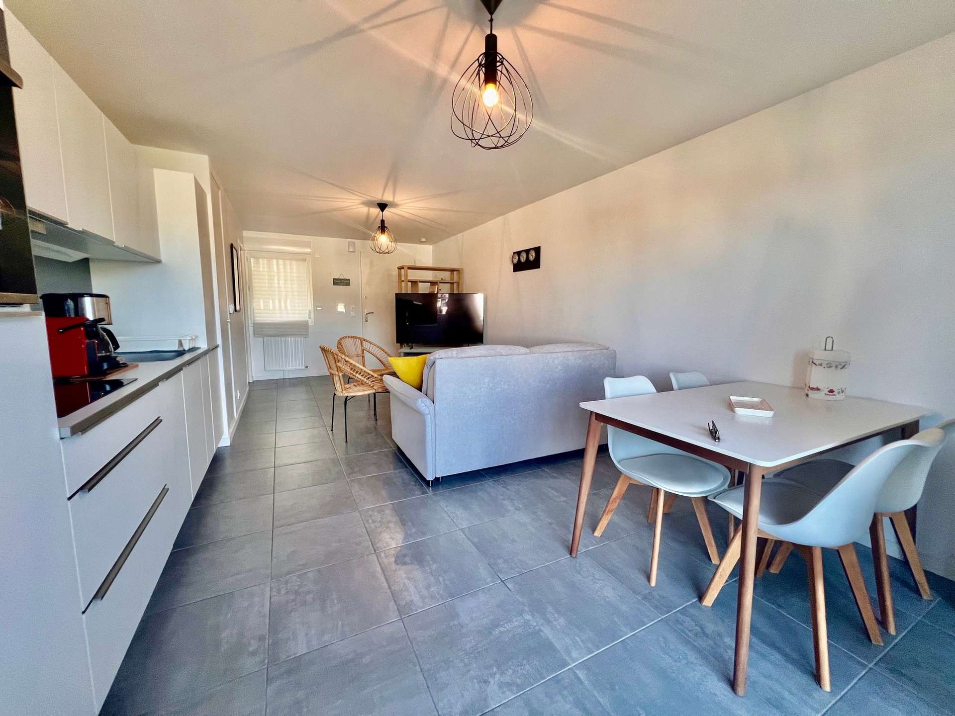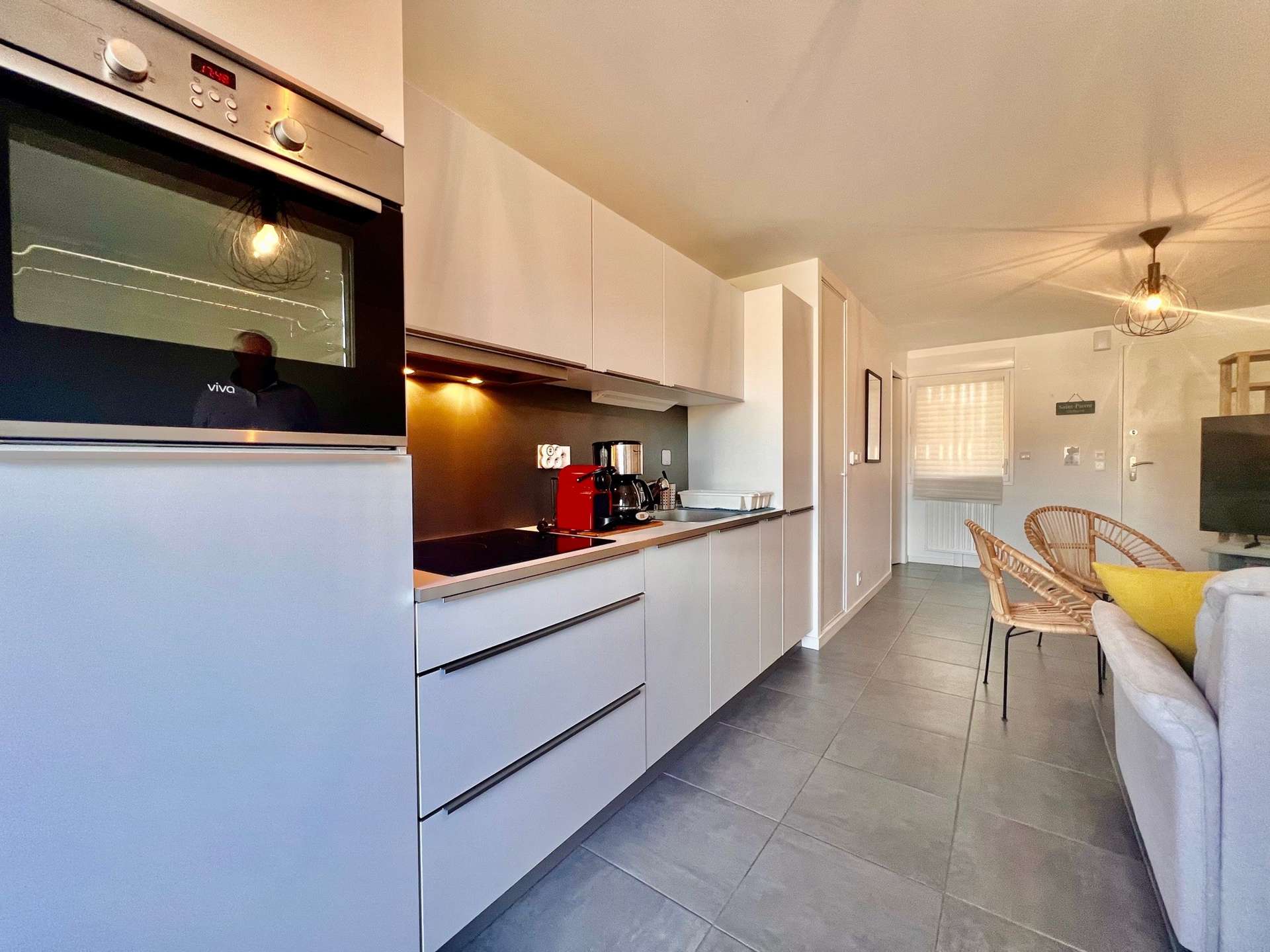- A fitted and equipped kitchen (induction hob, microwave, oven, fridge/freezer, dishwasher, kettle, coffee maker and toaster),