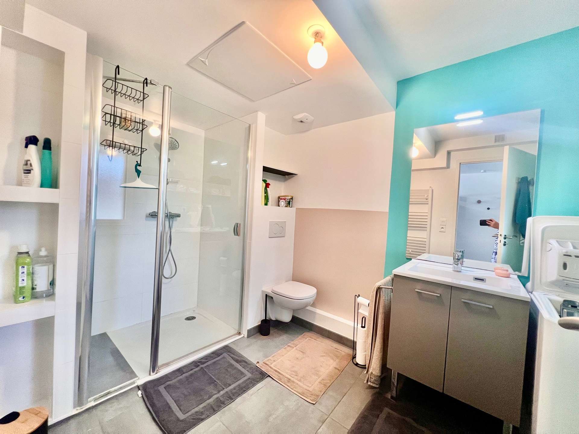 - A shower room with weshing machine and WC.