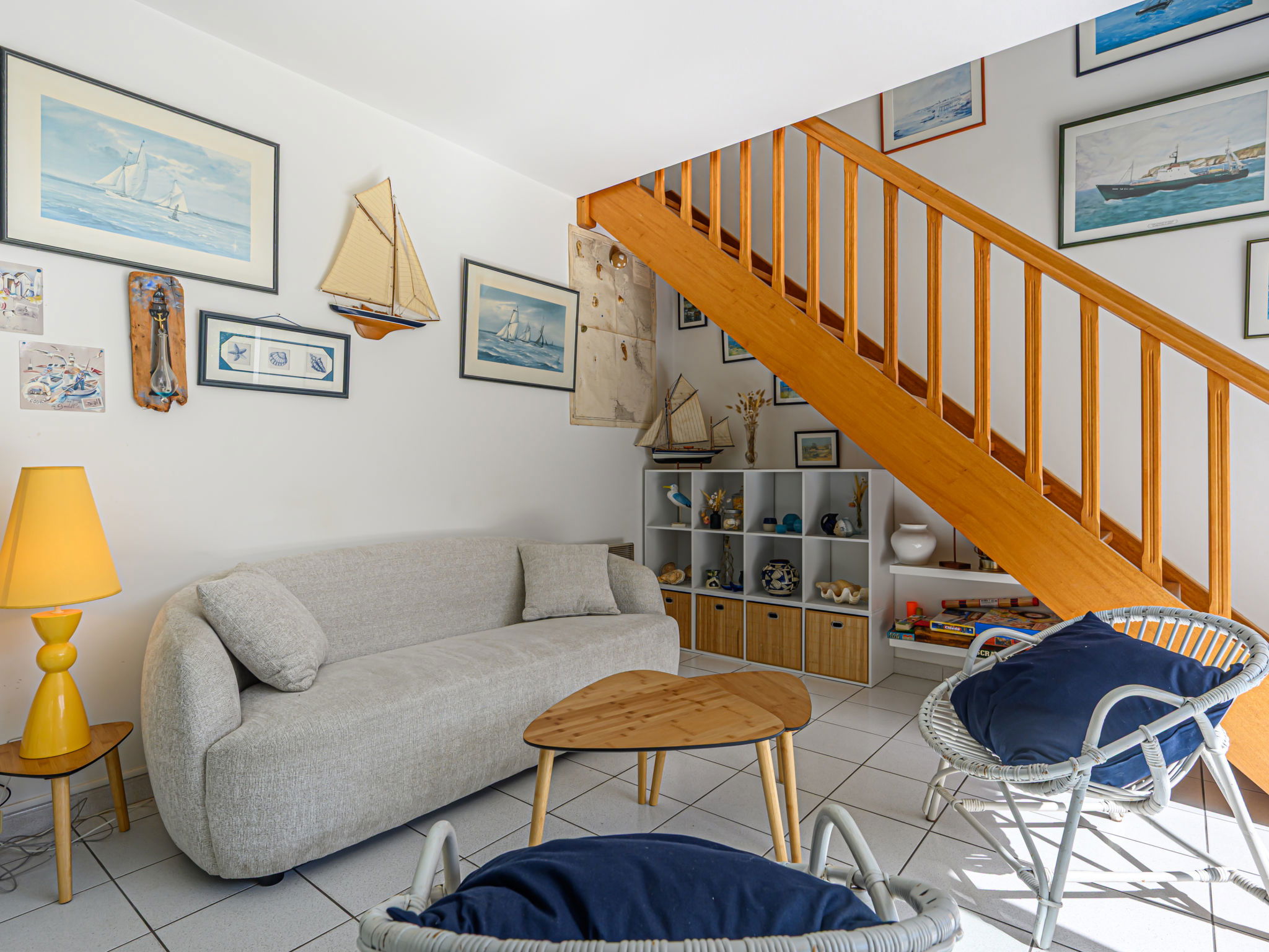 Saint Pierre Quiberon: Single-family house "Ty Jeanne", 2 storeys. In the district of Penthièvre, 60 m from the sea, 60 m from the beach. Shop 4 km, supermarket 4 km, restaurant, bar 300 m, bakery 200 m, bus stop 500 m, sandy beach "Grande plage de Penthièvre" 60 m, indoor swimming pool 10 km, thermal baths "Thalassothérapie de Quiberon" 12 km. Surf school 3 km, tennis 1 km. Nearby attractions: Carnac et les Alignments 12 km, La Trinité sur Mer 16 km, Vannes 35 km, Lorient 39 km, Presqu'ile de Quiberon, Belle ile en Mer, Houat, Hoedic. The keys‘ handover takes place by the agency in Quiberon, 10 km.