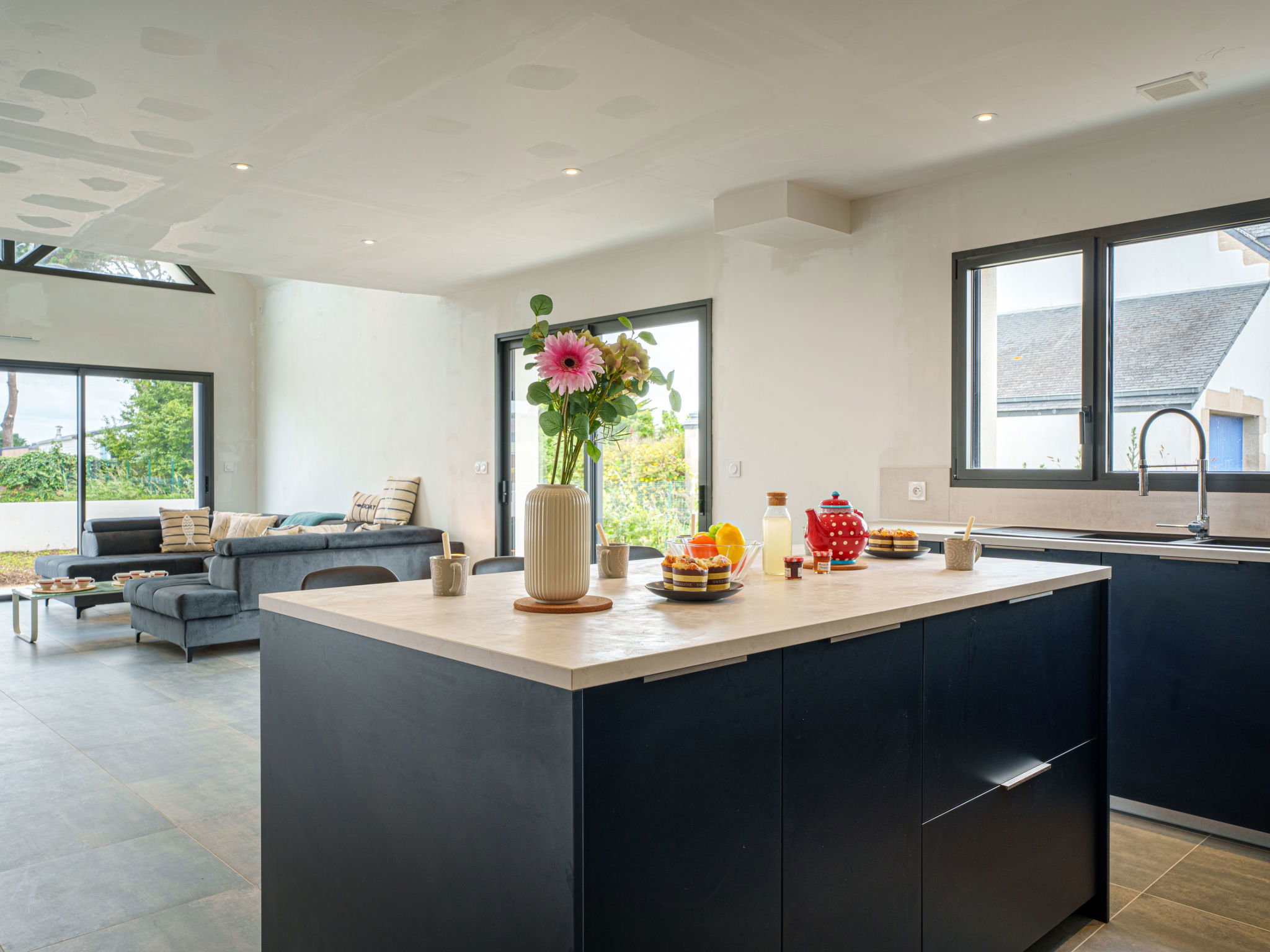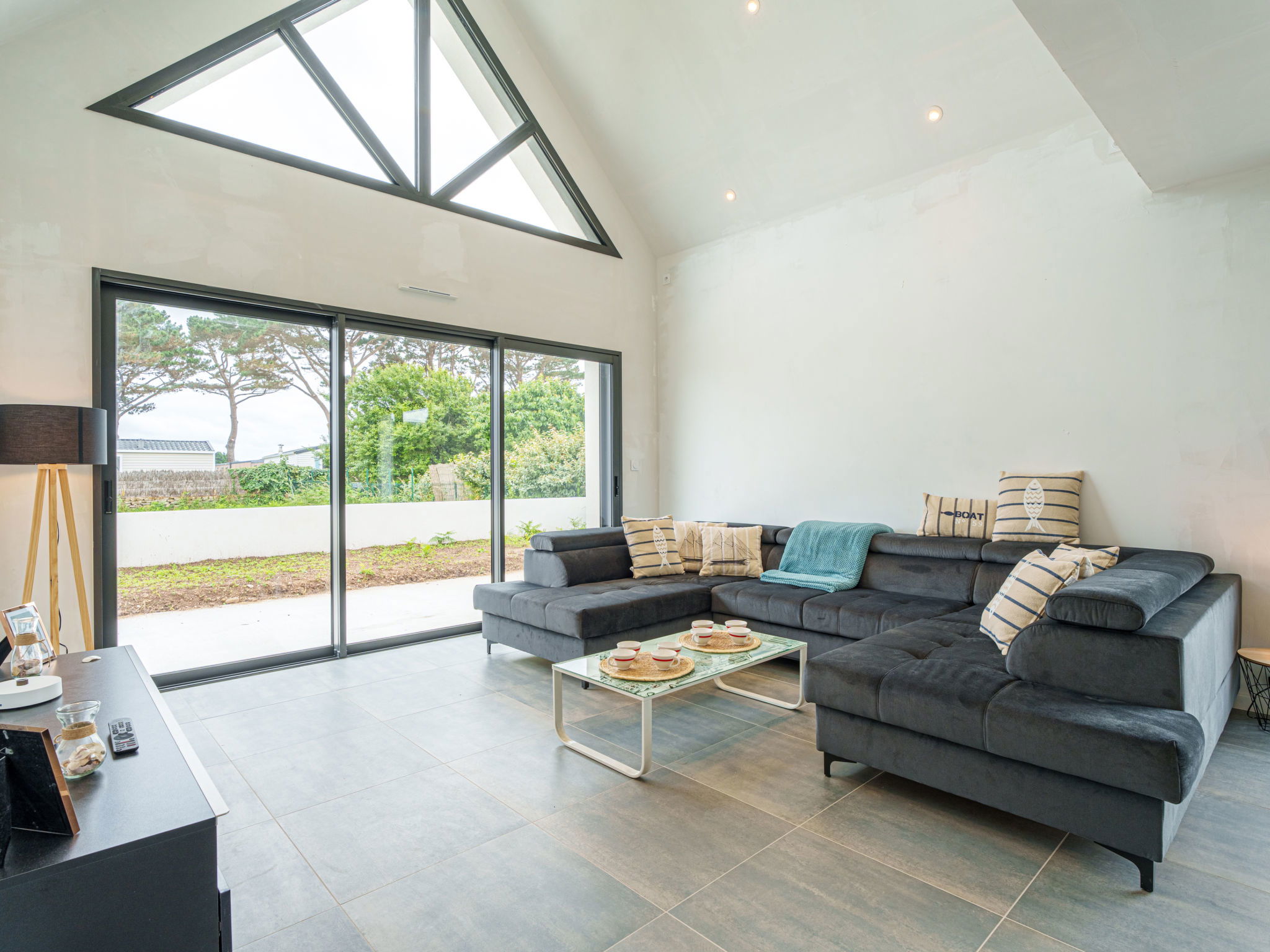 St Pierre Quiberon 4 km from Quiberon: Beautiful single-family house "Les Voiles", built in 2023. In the resort 1 km from the centre of Saint Pierre de Quiberon, 600 m from the sea, 600 m from the beach. Private: well-kept garden 300 m2 (not fenced) lawn, parking on the premises. Shop 2 km, supermarket 3 km, restaurant 2 km, bus stop 2.5 km, sandy beach "Le Rohu" 600 m, outdoor swimming pool 3 km. Golf course (18 hole) 18 km, surf school 6 km, sailing school 200 m, tennis 2 km, riding stable 2 km. Nearby attractions: Presqu'ile de Quiberon, Belle ile en Mer, Houat, Hoedic, Carnac et les Alignments 12 km, La Trinité sur Mer 16 km, Vannes 35 km, Lorient 55 km. The keys‘ handover takes place by the agency in Quiberon, 3 km.